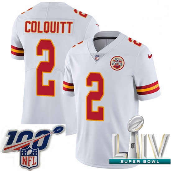 Home>NFL>2020 Super Bowl LIV >Men>2020 Super Bowl LIV Men Nike Kansas City Chiefs #2 Dustin Colquitt White Vapor Untouchable Limited Player NFL Jersey
