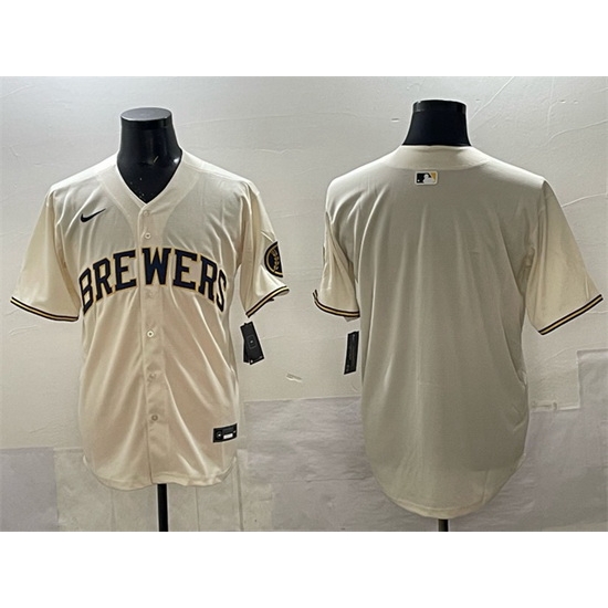 - Men Milwaukee Brewers Team Big Logo Cream Home Limited Stitched Jersey