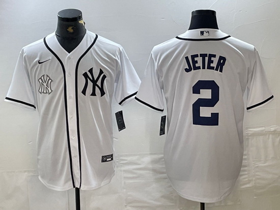 - Men New York Yankees 2 Derek Jeter White Cool Base Stitched Baseball Jersey 1