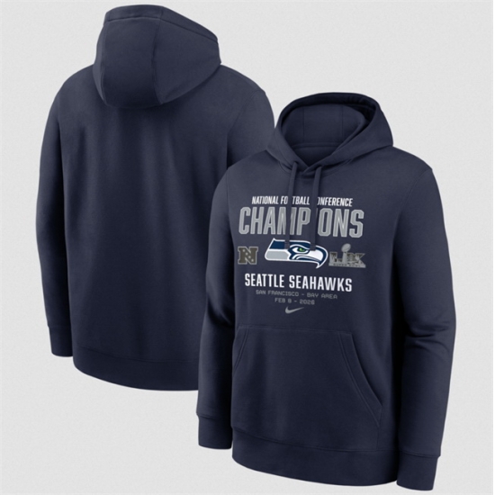 - Men Seattle Seahawks Navy 2025 NFC Champions Glory Shield Hoodie