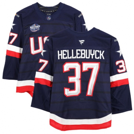 - Men USA 37 Connor Hellebuyck Home Blue 2026 Olympic Hockey Jersey