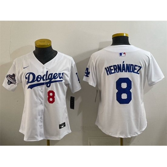 - Women Dodgers Front 8 Back 24 Kobe Bryant White Cool Base Stitched MLB Jersey