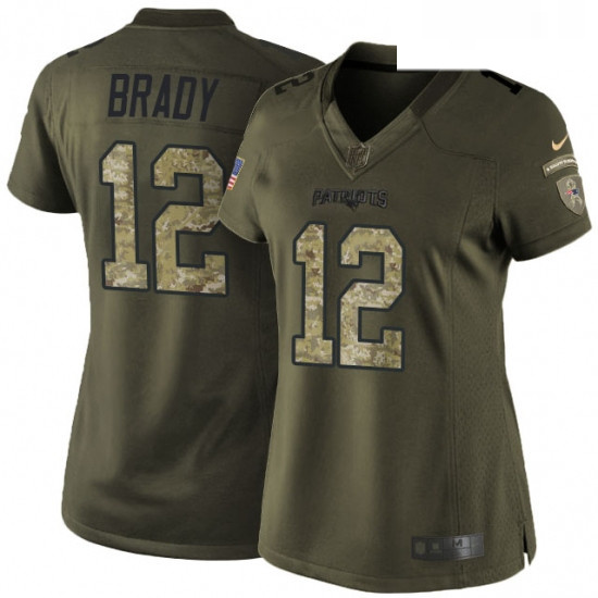 - Womens Nike New England Patriots 12 Tom Brady Limited Olive 2017 Salute to Service NFL Jersey